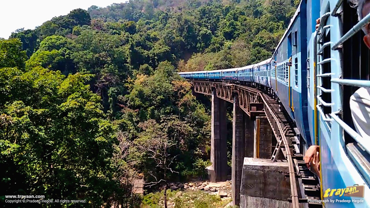 A 413 kilometres railway journey between Bangalore and Mangalore through the splendidly scenic Sahyadri mountain range section in Karnataka.